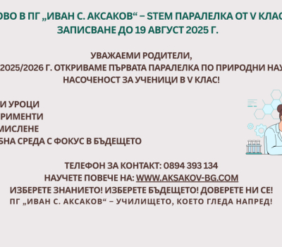В гимназия „Иван С. Аксаков“ – първи прием природни науки, 5 клас, със STEM насоченост